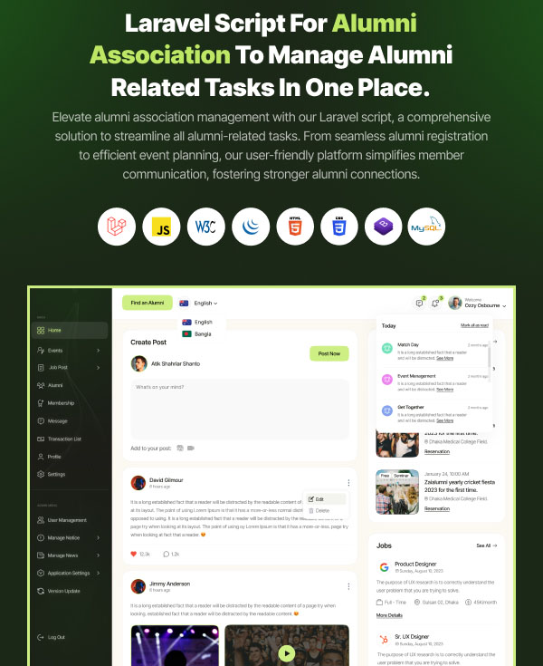 Announcement Board: Administrators can post important notices and updates to inform alumni about news and events.