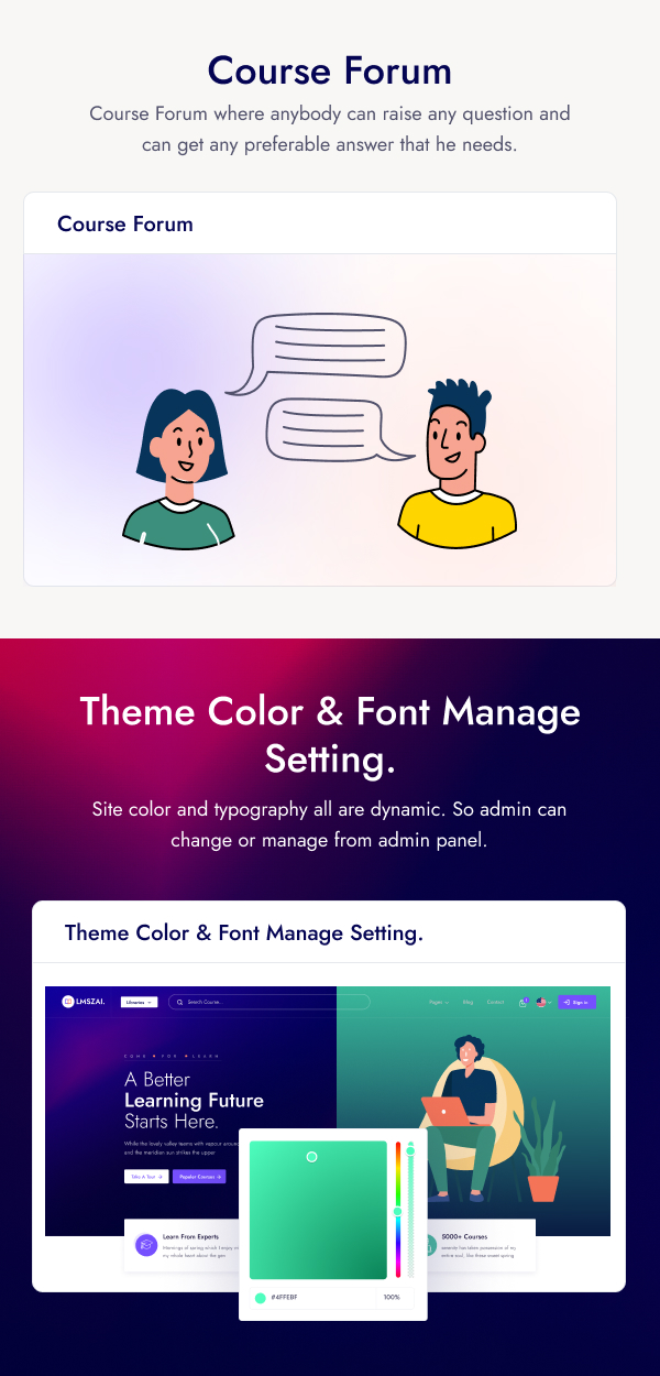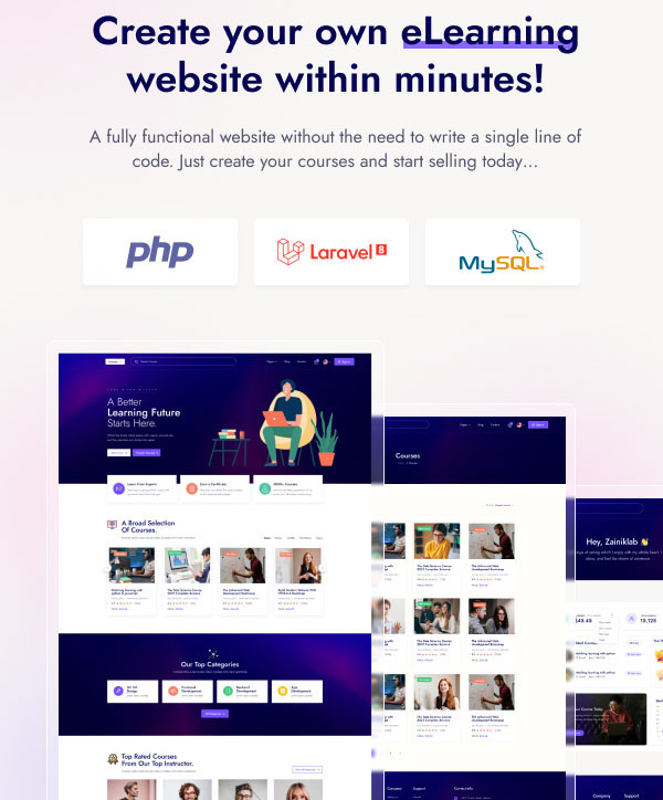 A web based responsive application that includes an online learning management system, you can view on this page and live demo. You can also key features in the following list.