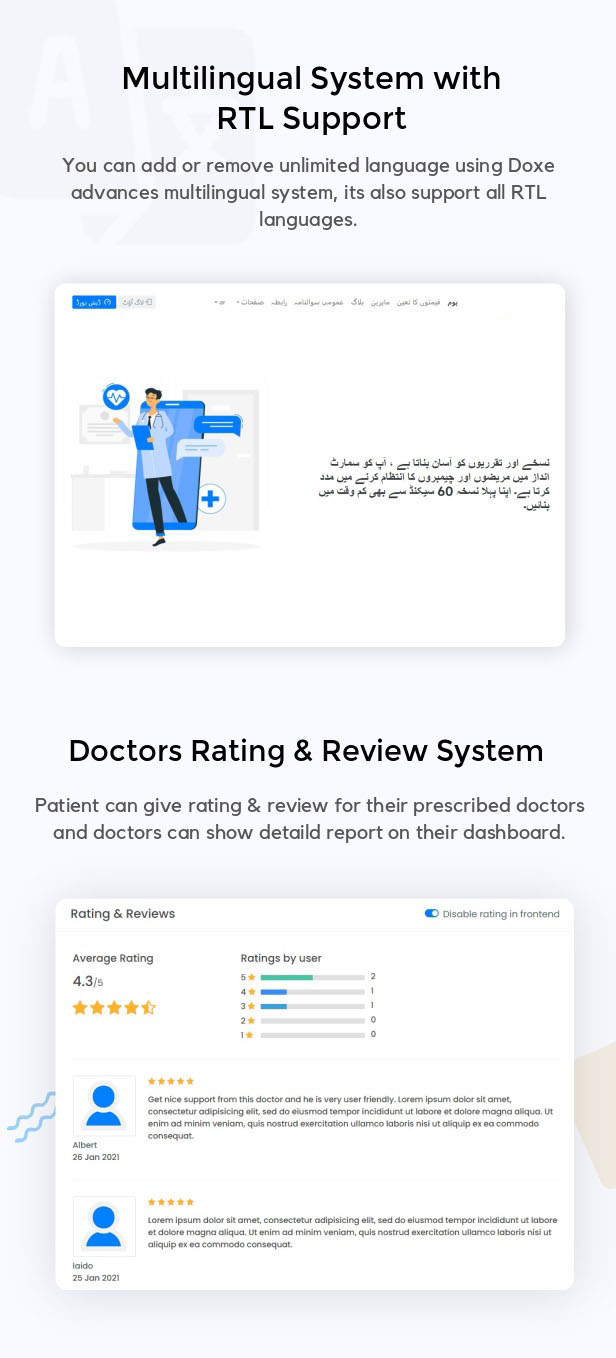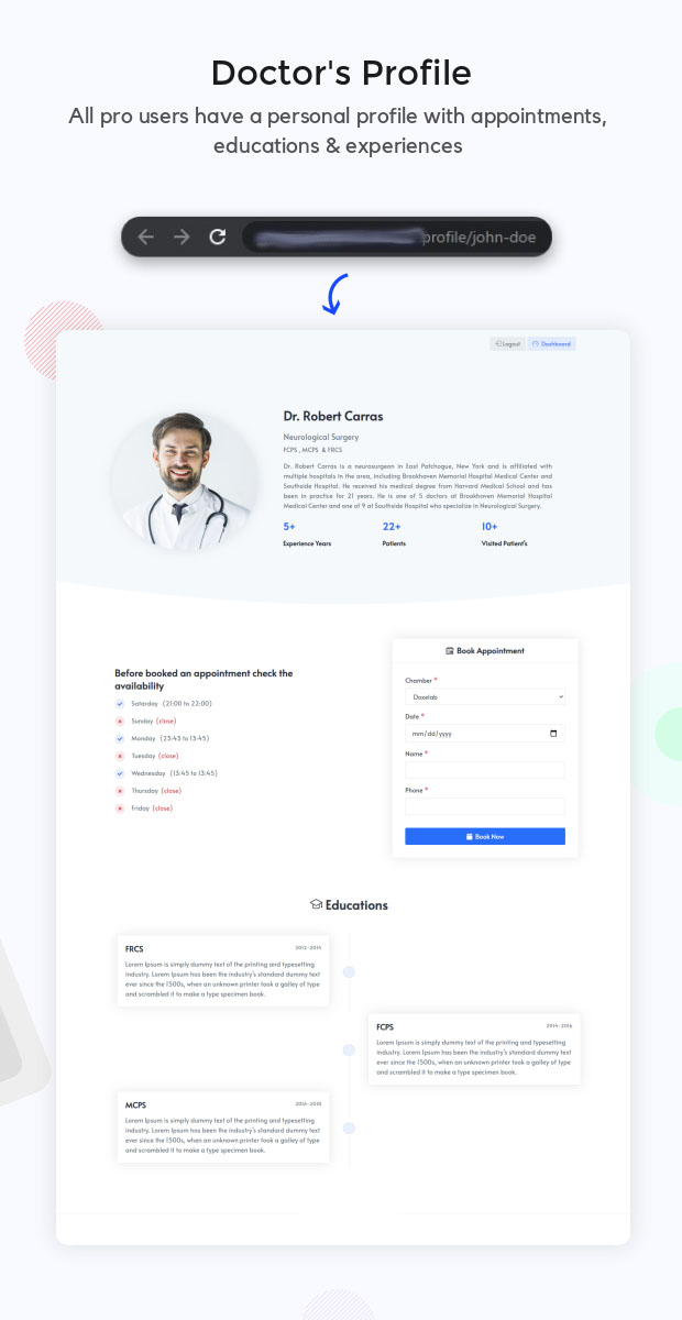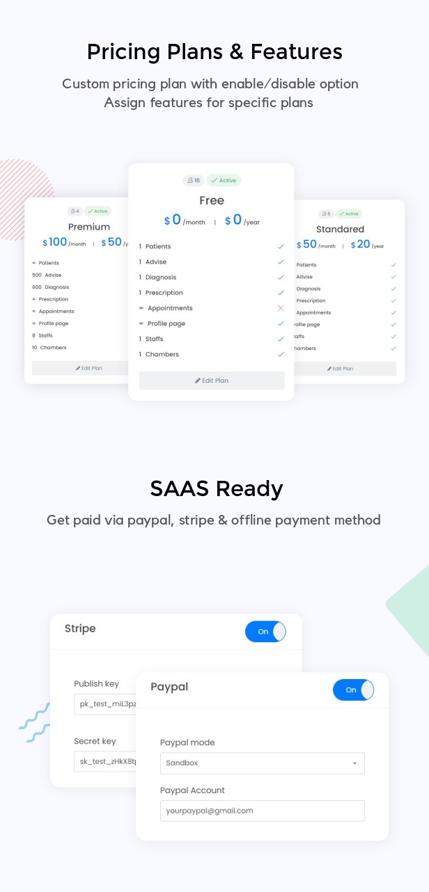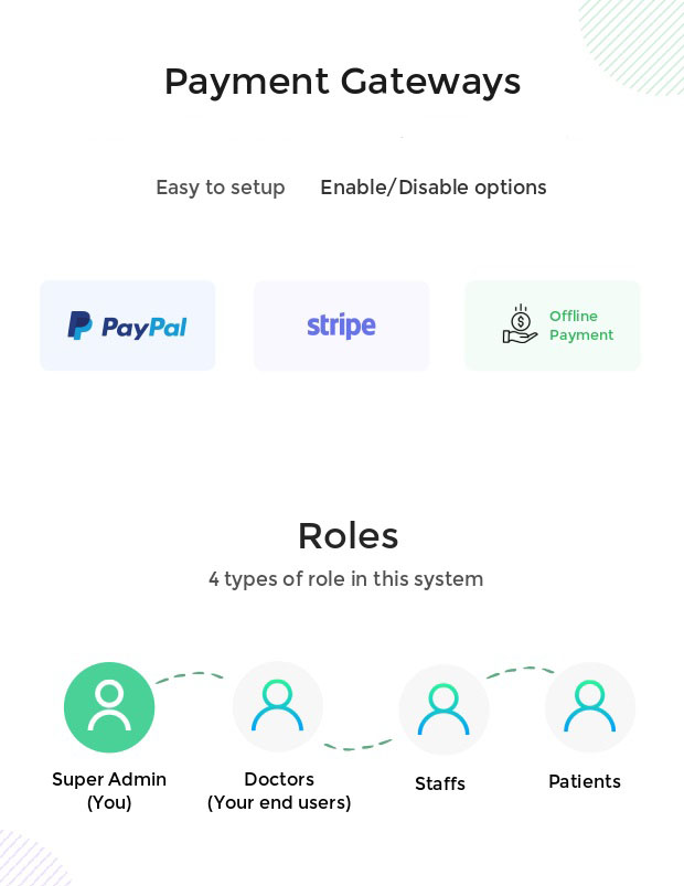 - Patients will book an appointment for specific doctors and need to pay for online consultation using paypal/stripe