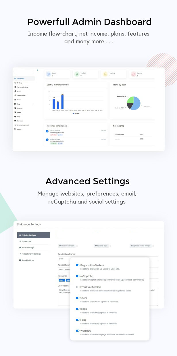 - Google reCaptcha attached with (Register & Contacts forms with enable or disable option)