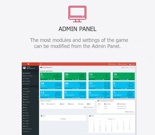 The most modules and settings of the game can be modified from the Admin Panel. - Easily Customizable Source Code