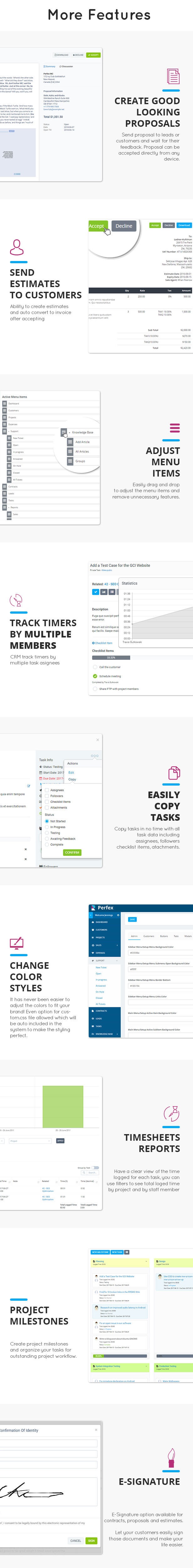 Create good looking proposals for leads or customers and increase sales. Receive notification when proposal is accepted/declined and auto send thank you email to your customer after accepting the proposal. Proposal overdue notice before X days available.