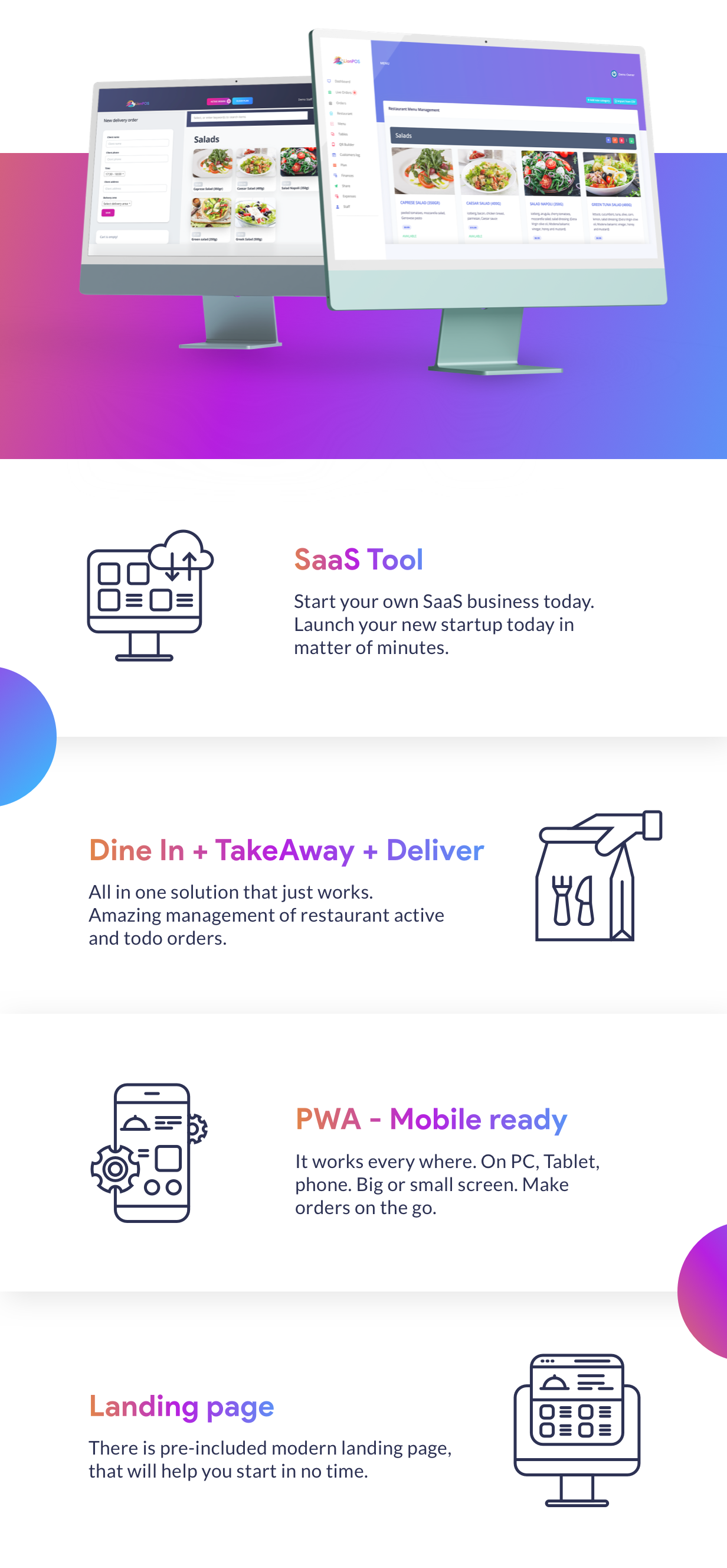 - Manage DineIn – Delivery – Takeaway orders