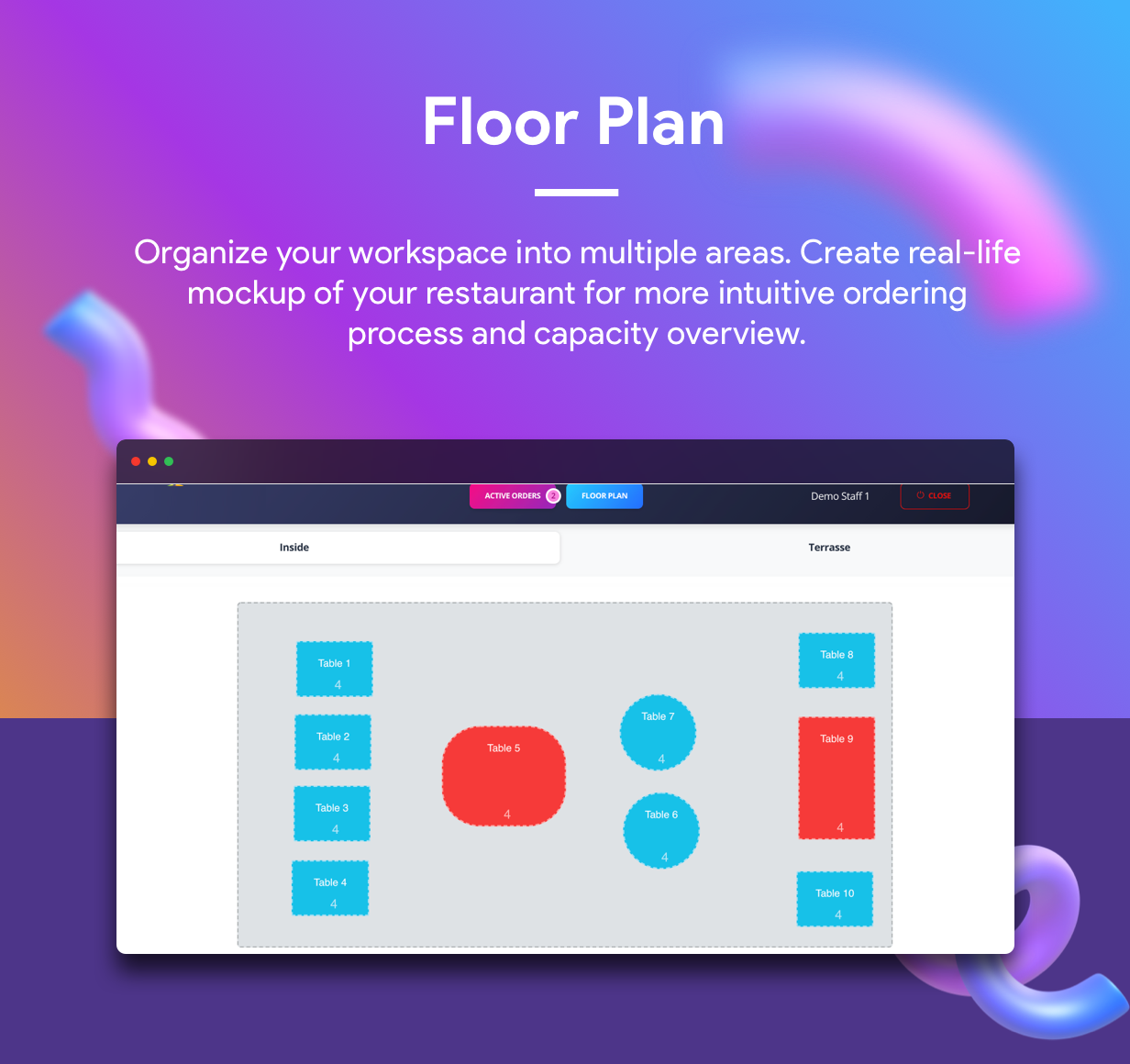- Floor plan – see the orders in realtimie