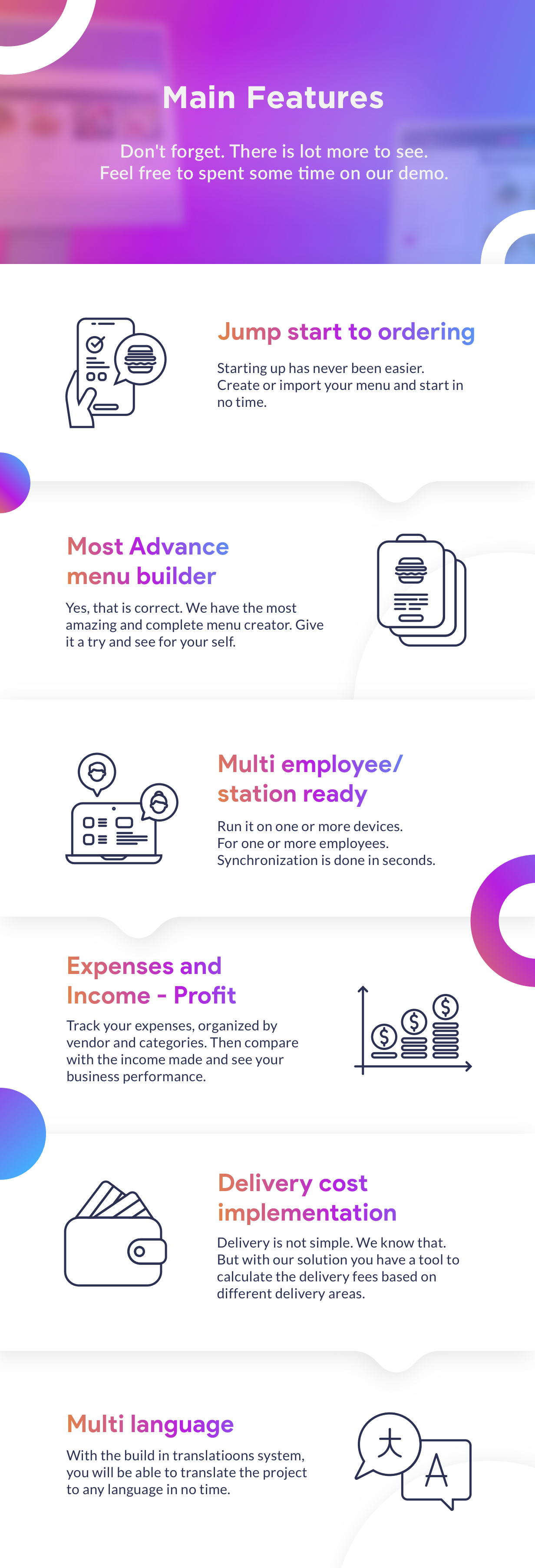 It is based on a smart interface that any restaurant or bar can use it without difficulty. Because it is so flexible you can configure this application to meet your precise needs.