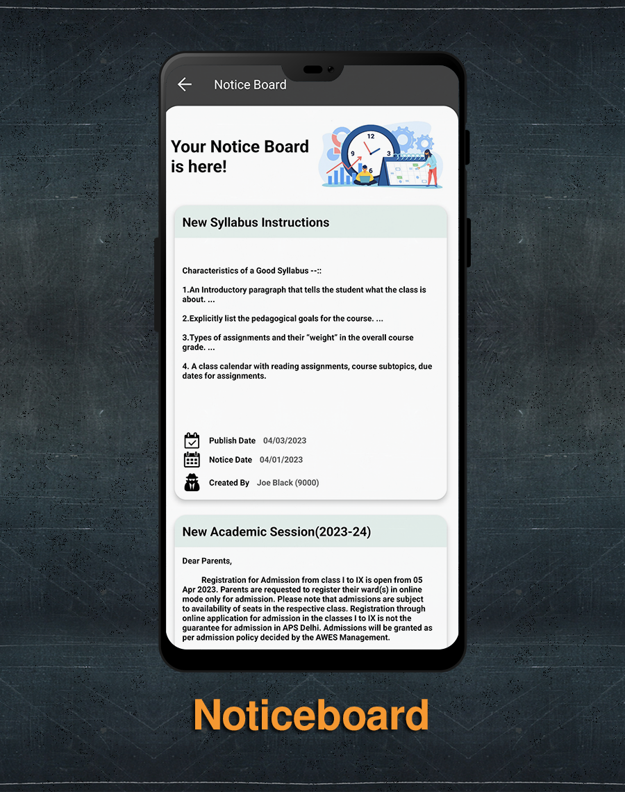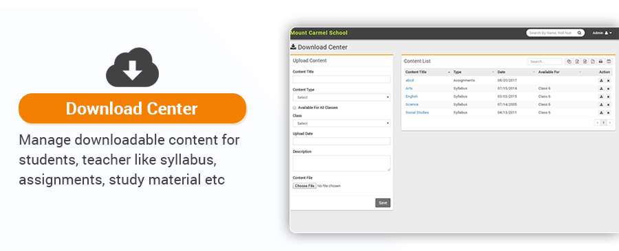 - Manage downloadable content for students, teacher like syllabus, assignments, study material etc.