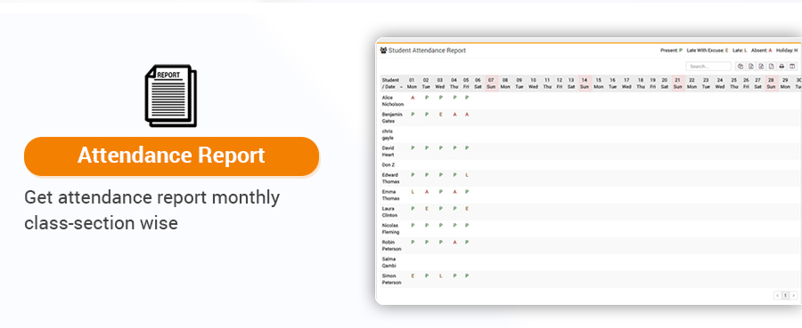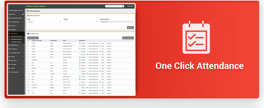 - Manage student attendance smartly in few clicks. Get attendance report monthly class-section wise.
