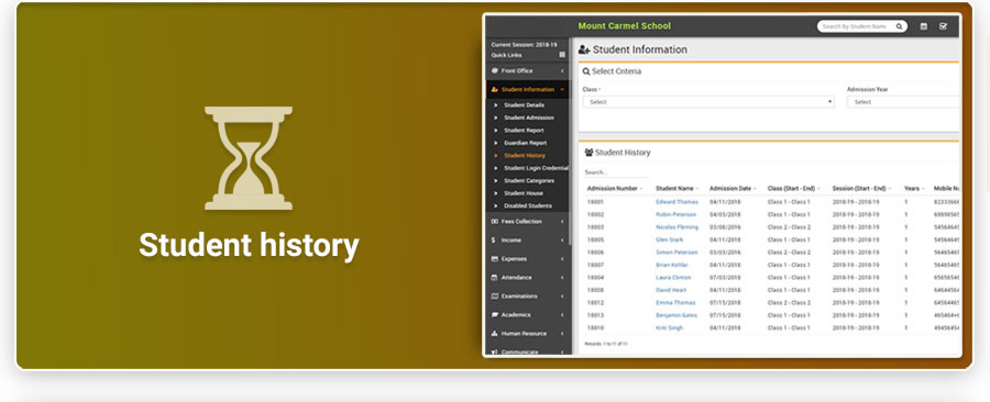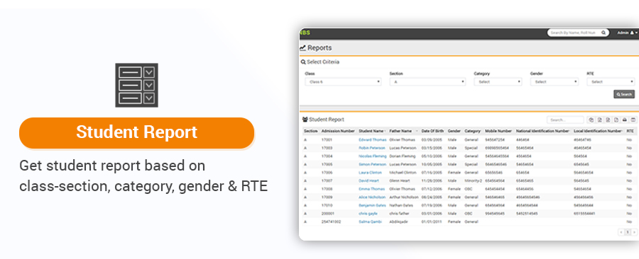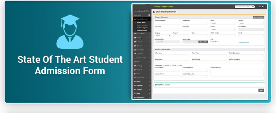- Take student admission with powerful student admission form add 40+ records for student including previous school details. Add student siblings, RTE, IDs and multiple documents to maintain complete record in student profile.