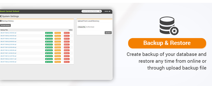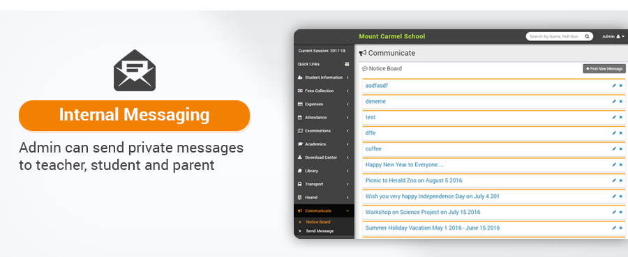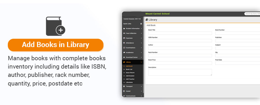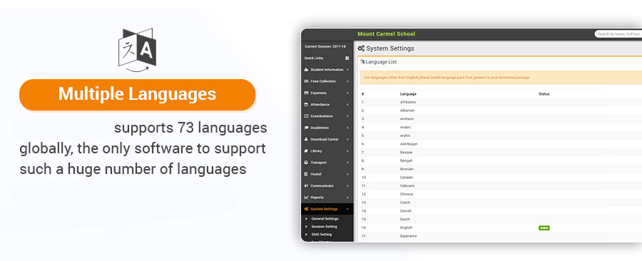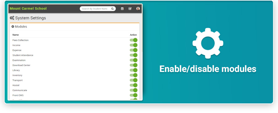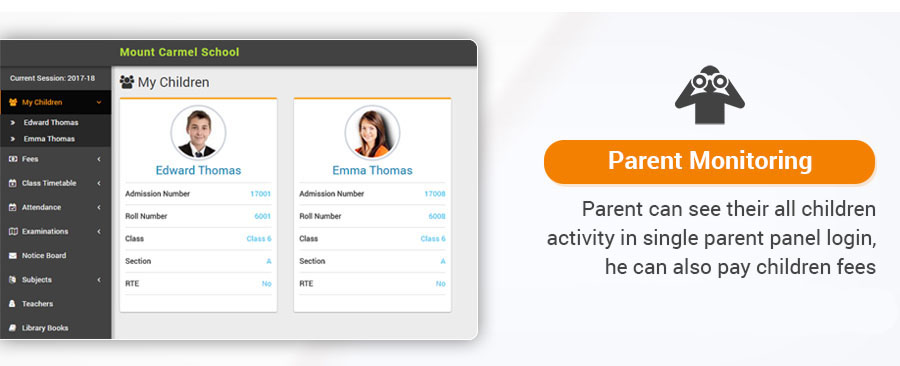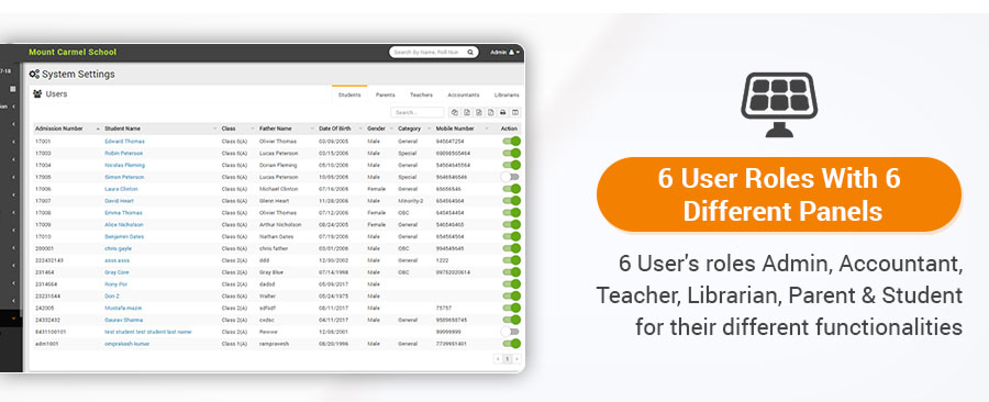 Modern and Complete School Automation Software that suites to almost every school or educational institution from student admission to student leaving, from fees collection to exam results. It includes 40+ modules with 8 inbuilt users (Super Admin, Admin, Accountant, Teacher, Receptionist, Librarian, Parent and Student) panel.