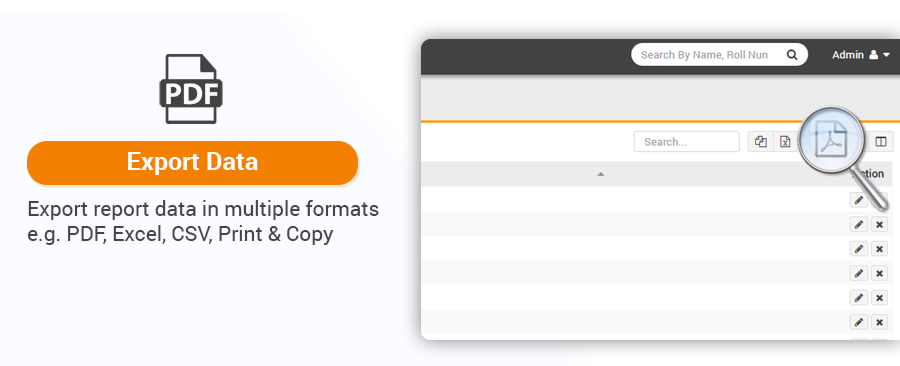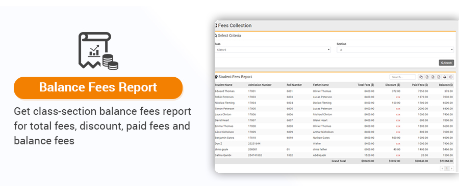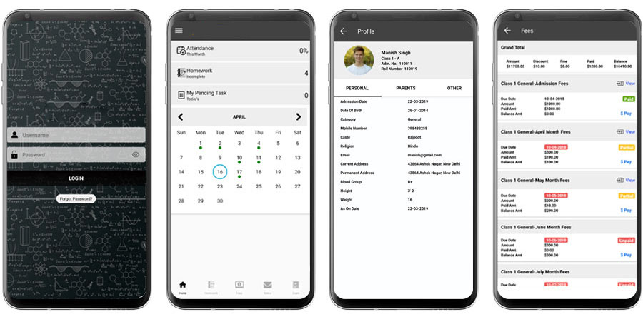 - Get various reports based on students, fees statement, transaction, balance fees, attendance, exam.
