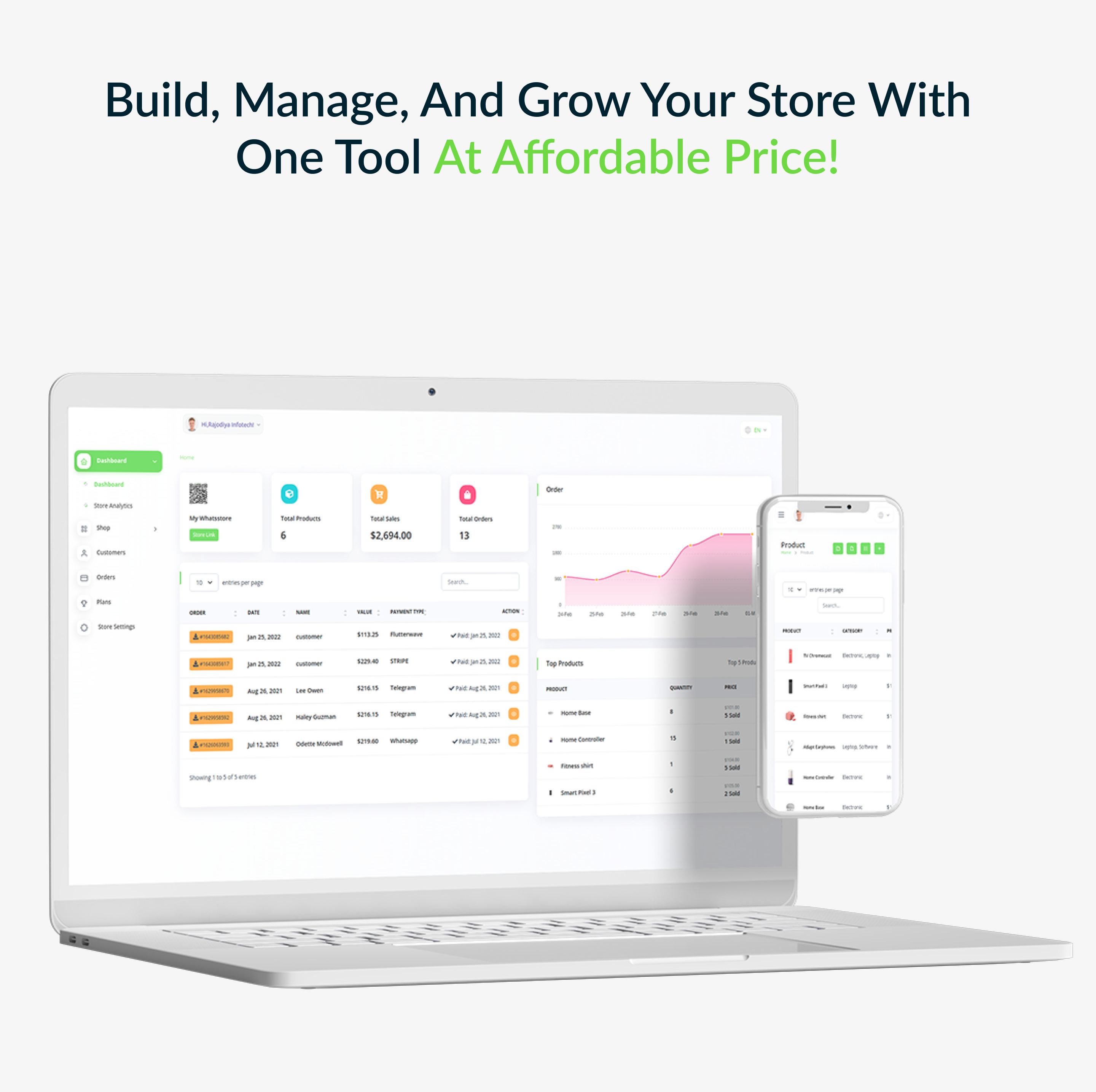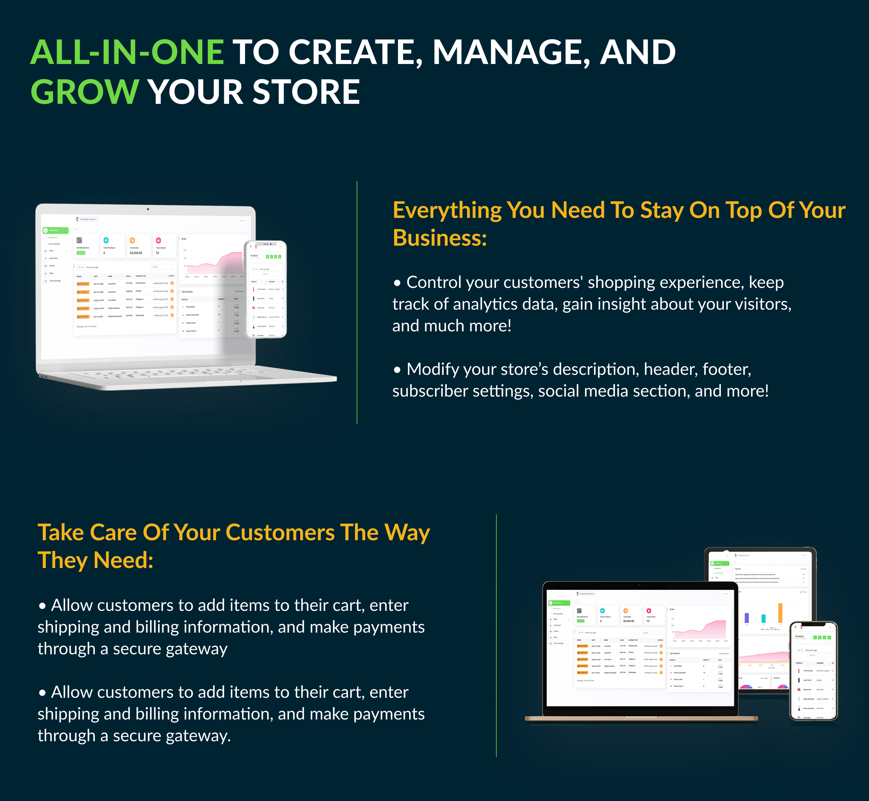 Since the store operates on two fronts, It would offer 2 dashboards for the effective management of both; the back end and the front end.