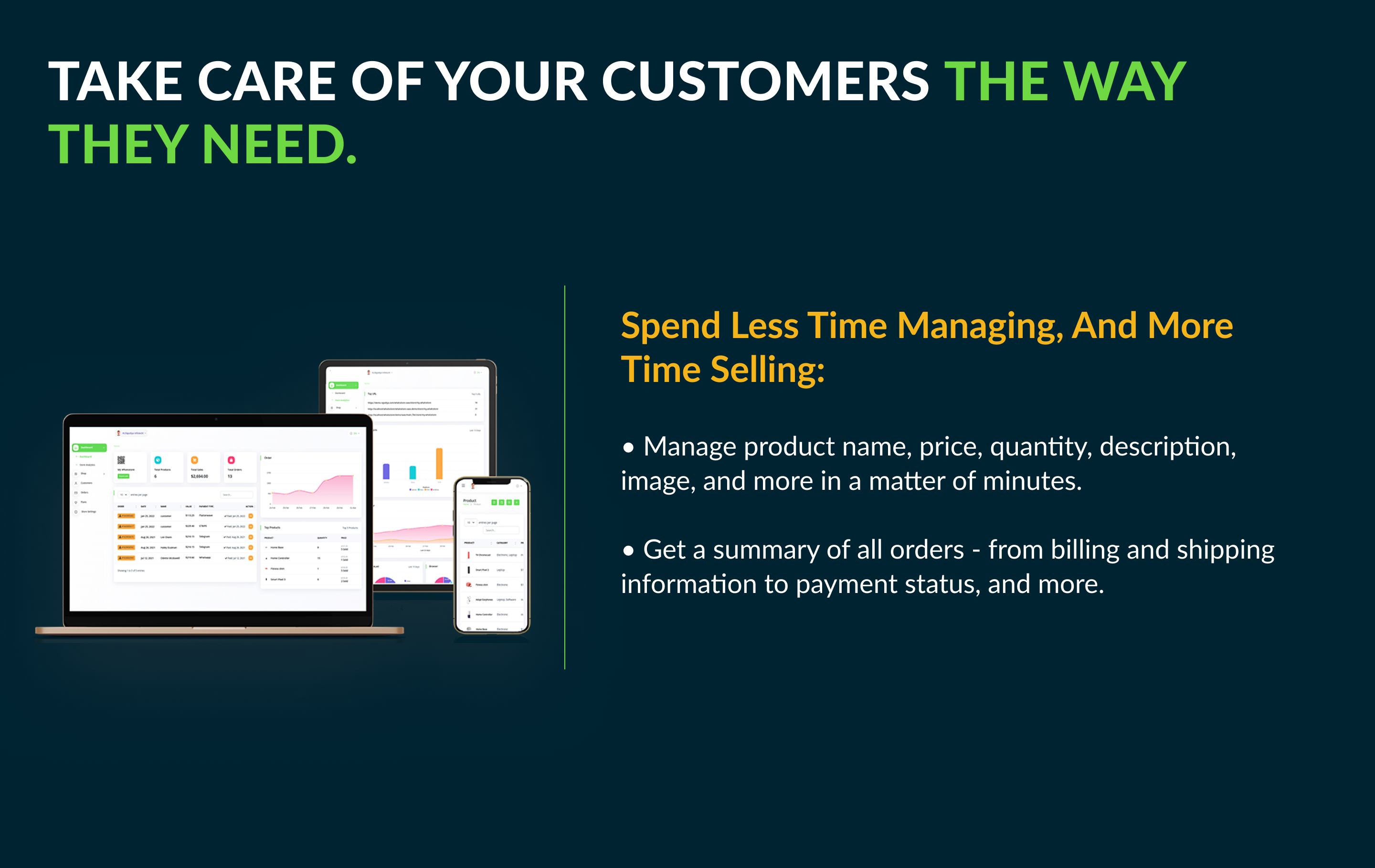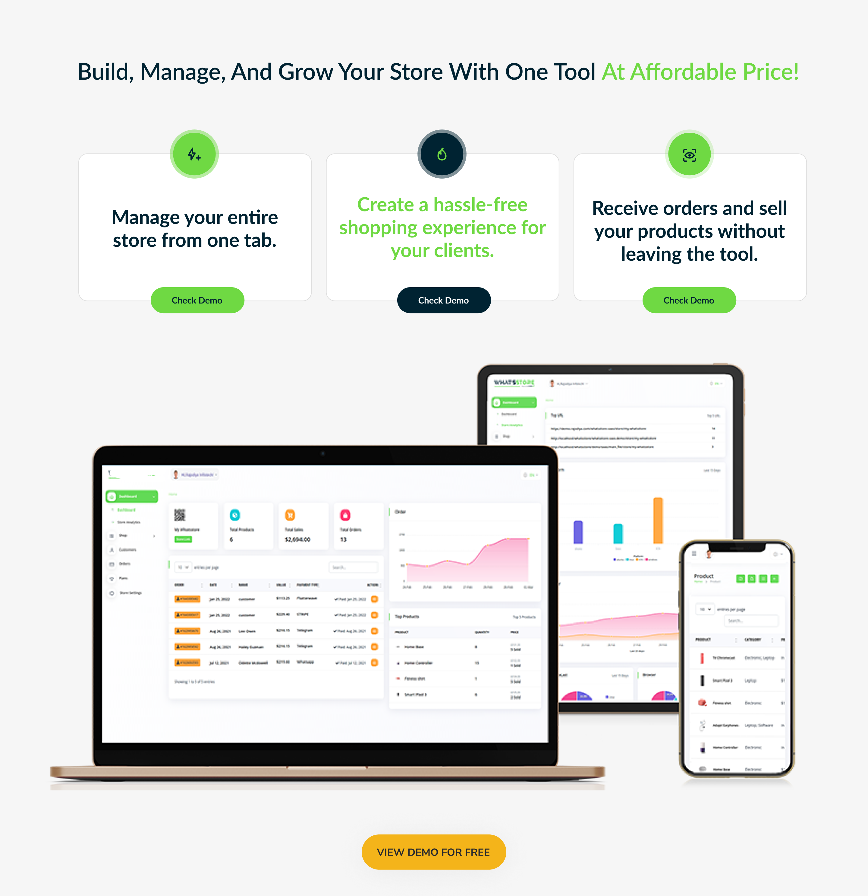 - Easy to manage storefront by listing products and product categories